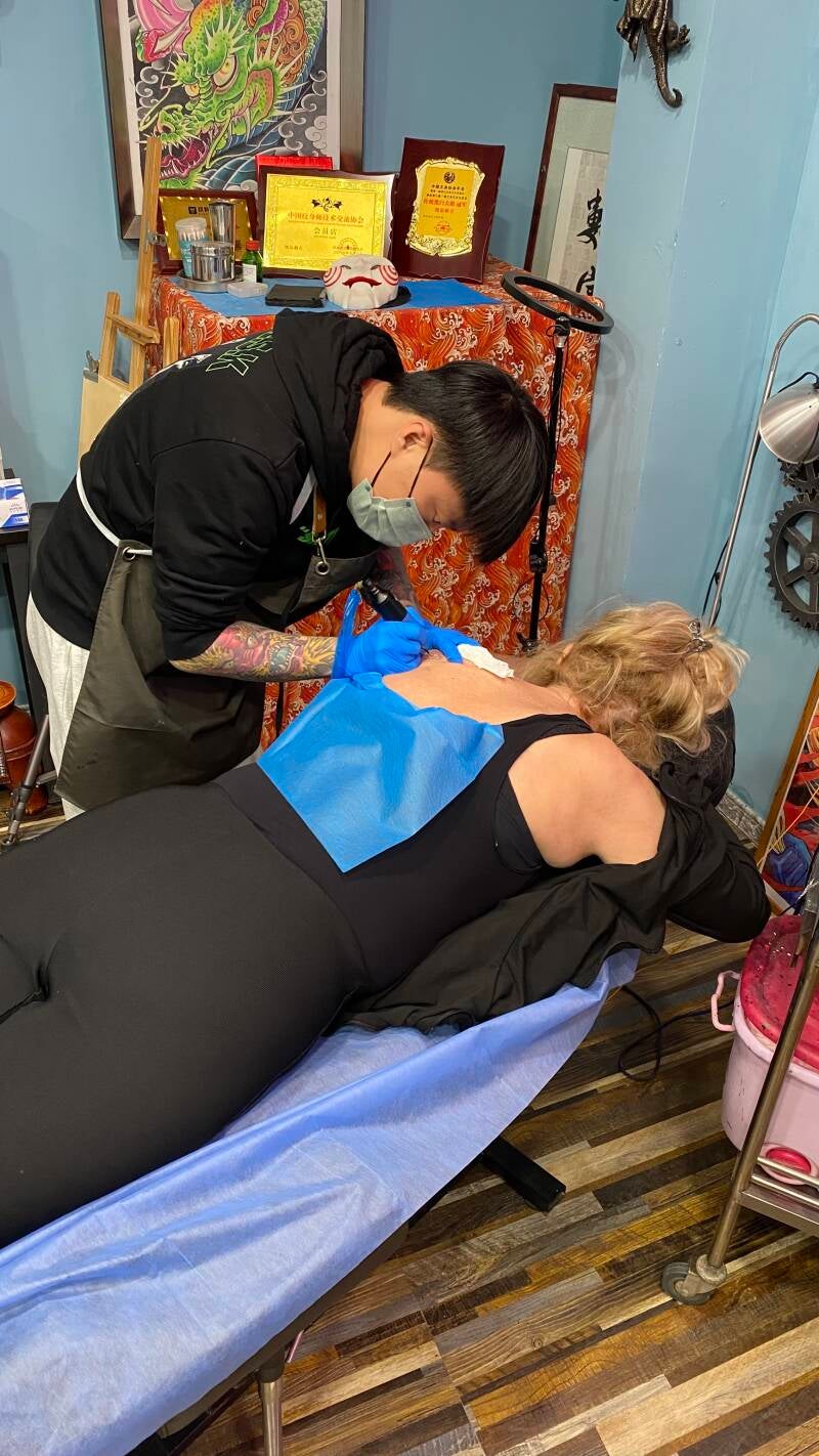 Met technicus Eelke en mijn zoon Yuri samen met onze assistente Rebecca de allereerste keer in Shanghai, China in 2009